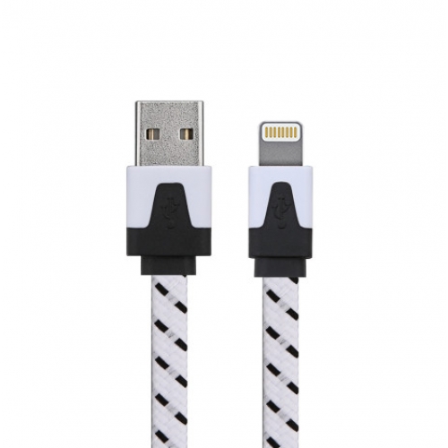 Platte nylon Lightning kabel 3 meter wit