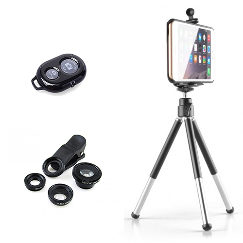 Voordeelpakket Smartphone statief, lenzenset en afstandsbediening